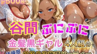 「ねぇ、これ本当に着るの……? サイズ、明らかに合ってないんだけど」 「あら(はーと) 懐かしいわぁ。……あら、胸が……入らない……(はーと)」 「……黙って着ればいいんでしょ。……っ、きつ……」 「うふふ、大丈夫大丈夫(はーと) ちょっときついけど……ほら、入った(はーと)」 4人の金髪爆乳人妻が、かつて少女だった頃の衣装――旧いスクール水着に身を包み…
